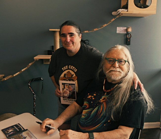 The Catio's Brandi Hodge and Norman Greenbaum. Other cat rescues can learn from The Catio's strategy by tapping into their own networks of local celebrities, musicians, athletes, or media personalities. These figures often have loyal followings that can be mobilized to support charitable causes. By inviting them to participate in adoption fairs, fundraisers, or social media campaigns, rescues can expand their reach beyond traditional animal welfare circles and into broader community awareness. The key to success lies in authenticity. Greenbaum's appearance worked because it aligned with the spirit of the event and resonated with attendees. Norman was present in the memory of his own beloved cat named Oliver while signing autographs and sharing stories with a number of fans who turned out to meet and greet America's most beloved hippie. For other rescues, partnerships should be built around shared values - whether it's a country singer passionate about pets, a local sports figure advocating for community service, or a journalist committed to highlighting grassroots initiatives. Authenticity ensures that celebrity involvement feels genuine rather than transactional.